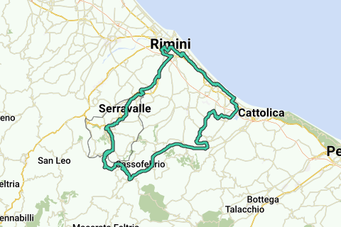 Da rimini si passa a riccione e misano per poi andare a monte fino a san clemente scendendo sulla base fino a mercatino conca poi salendo per san marino e sassofeltrio a quel punto attraverso fiorentino si rientra a san marino e si scende fino a rimini.