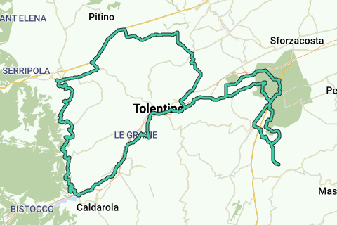 Un percorso ricco di fascino e di storia... partiamo da Loro Piceno patria del Vino Cotto e ci dirigiamo in discesa verso la Riserva Naturale dell'Abbadia di Fiastra. Proseguiamo la nostra pedalata nella storia, passando per il Castello della Rancia, la collina di Cantagallo scenario della Battaglia di Tolentino contro le truppe Austriache per poi imboccare una delle piu' belle strade di campagna che ci condurranno a San Severino Marche. A quel punto una leggera ma costante salita ci condurrà al Borgo di Serrapetrona famoso per il suo vino "LA VERNACCIA" uno spumante rosso docg. Il ritorno sarà breve e veloce affrontando la discesa che ci porterà su Tolentino per poi fare rientro a Loro Piceno.