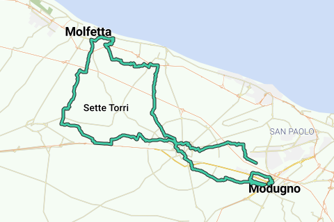 <p><a class="routeYou_embed" href="https://app.routeyou.com/it-it/route/view/7370487?utm_source=embed&utm_medium=article&utm_campaign=routeshare&navigation=external" title="Anello Molfetta Bitonto Modugno (tangente Giovinazzo e Terlizzi) - RouteYou" target="_blank"><img src="https://image.routeyou.com/embed/route/960x670/7370487-it@2x.png" style="width: 100%; height: auto;" alt="Anello Molfetta Bitonto Modugno (tangente Giovinazzo e Terlizzi)"></a></p>