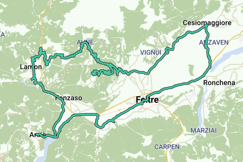 Arsiè-Seren del Grappa-Feltre-Pedavena-Monte Avena (Via Col Melon)-Passo Croce d'Aune-Pian del V.vo-Arsiè