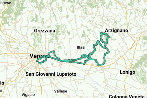 Da Verona a Colognola ai Colli, salita per Castelcerino, Montecchia di Crosara, Roncà. Da Roncà salita al Monte Calvarina dalla Cantina Fongaro e poi discesa da Brenton con rientro a Verona