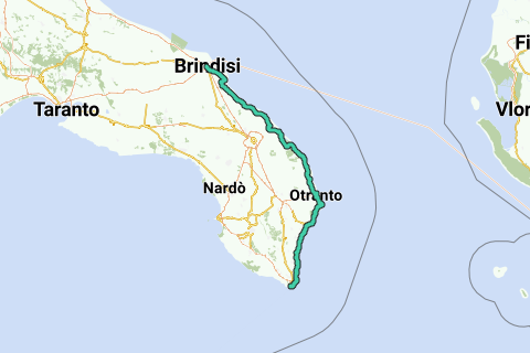<p><a class="routeYou_embed" href="https://app.routeyou.com/it-it/route/view/7821007?utm_source=embed&utm_medium=article&utm_campaign=routeshare&navigation=external" title="Brindisi - S.M.di Leuca lungo il mare 141km - RouteYou" target="_blank"><img src="https://image.routeyou.com/embed/route/960x670/7821007-it@2x.png" style="width: 100%; height: auto;" alt="Brindisi - S.M.di Leuca lungo il mare 141km"></a></p>