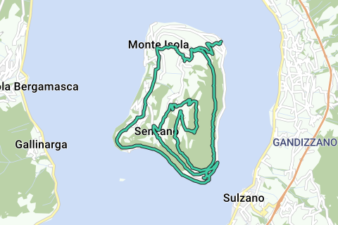Questa passeggiata inizia ai piedi della Peschiera Maraglio. Da qui la passeggiata porta oltre Senzano e Cure fino al punto più alto dell'isola, la Madonna della Ceriola. Dopo una discesa verso l'abitato di Peschiera Maraglio, la passeggiata prosegue su sentiero per Carzano, Olzano e Masse. Da Masse si può proseguire a piedi verso Siviano, Menzino e Sensole per poi terminare il cammino di ritorno a Peschiera Maraglio.