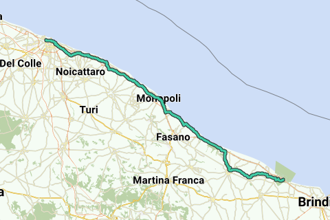 <p><a class="routeYou_embed" href="https://app.routeyou.com/it-it/route/view/795086?utm_source=embed&utm_medium=article&utm_campaign=routeshare&navigation=external" title="Bari - Torre Guaceto - RouteYou" target="_blank"><img src="https://image.routeyou.com/embed/route/960x670/795086-it@2x.png" style="width: 100%; height: auto;" alt="Bari - Torre Guaceto"></a></p>