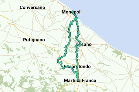 long cycle tour from Martina Franca to Monopoli ; start & finish ebike Puglia