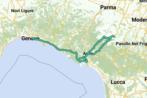 Un bellissimo intinerario che parte da Genova utilizza un minimo di autostrada (tanto per arrivare subito in zone interessanti dal punto di vista motociclistico) entra in Emilia traversando la Toscana, vi porta a vedere la famosa Pietra di Bismantova (nominata nella Divina Commedia di Dante) attraversando meravigliosi paesaggi prima marini e poi montani.