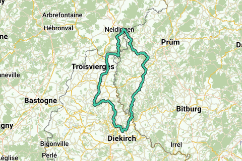 Dreihütten - Lommersweiler - Burg-Reuland – Quart – Stupbach – Welchenhausen – Oberhausen – Peterkirche ▲– Weiswampach – Lausdorn – Hupperdange – Ischpelt – ∆ Reuler – ∆Munshausen – Pintsch – Lellingen ▲– Hosingen-Barrière – wahlhausener Dickt – Weiler – Branderbourg ∆ – Bastendorf – Tandel – ∆ Founren – Vianden ▲– Bauler – ∆ Herbstmühle – ∆ Karlhausen – Zweifelscheid – ∆ Emmelbaum – ∆ Arzfeld – ∆ Lichtenborn – Hözenkopp – Masthorner Mühle – ∆ Masthorn – ∆ Hallert – ∆ Heckhuscheid – Heckhalenfeld ∆ – Winterspelt – Steinebrück ∆ – Dreihütten.