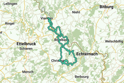 <p><a class="routeYou_embed" href="https://app.routeyou.com/it-lu/route/view/9550623?utm_source=embed&utm_medium=article&utm_campaign=routeshare&navigation=external" title="Variante lunga verso il Müllerthal da Vianden (circa 80 km) - RouteYou" target="_blank"><img src="https://image.routeyou.com/embed/route/960x670/9550623-it@2x.png" style="width: 100%; height: auto;" alt="Variante lunga verso il Müllerthal da Vianden (circa 80 km)"></a></p>