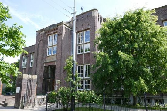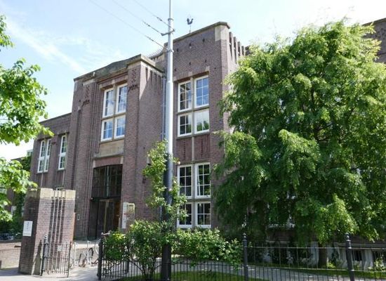 Nel laboratorio di Hugo de Vries (1912) dell'architetto Joan van der Meij sono già riconoscibili alcuni elementi dello stile della Scuola di Amsterdam nel decorativo mosaico di mattoni.