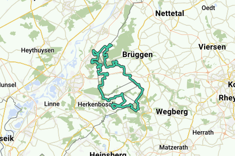 Pedali direttamente su strade in ghiaia attraverso le foreste comunali di Swalmen e lungo l'area naturale di Meerlebroek. Poi attraversi il confine e hai lunghe strade in ghiaia attraverso il Brachterwald e il Diergardtscher Wald. Ci sono anche tre salite in questa parte, di cui la prima è davvero corta e piuttosto ripida (16-20%). Poi attraversi la strada principale Swalmen-Brüggen (fai attenzione uscendo dal Diergardtscher Wald, potresti dover aggirare una barriera!) e segui molto brevemente la pista ciclabile lungo questa strada. Segue quindi molto divertimento in ghiaia attorno all'Elmpter Schwalmbruch alternato: boschi, brughiere, ghiaia lungo il ruscello Swalm e una salita che ti porta fuori dall'area naturale.