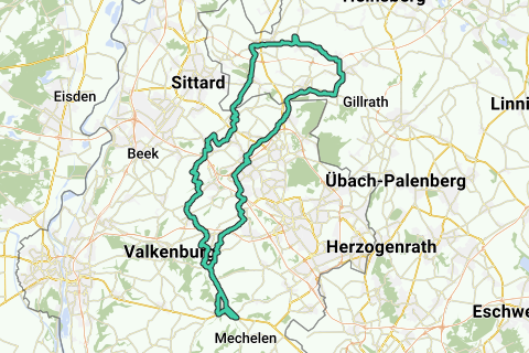 Partenza/fine: angolo Marktstraat/Rijksweg Gulpen. Salite: in arrivo. Metri di dislivello: 543.
