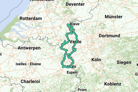 Questo percorso ti porta lungo il confine provinciale dei Paesi Bassi Limburg, partendo da Asten-Heusden. Ma naturalmente il percorso può iniziare in qualsiasi punto lungo il tragitto (nel qual caso la distanza extra da Asten-Heusden al confine provinciale Nord-Brabant/Limburgo viene annullata, rendendo il percorso circa 14 km più corto). A differenza di tutti gli altri miei percorsi, lungo questa strada ci sono tratti che non ho ancora percorso in bicicletta (ossia strade sterrate intorno a Mesch, tra Neeritter e Stramproy, intorno a Schalbruch (D) e nelle aree golenali della Mosa presso Kotem (B)).