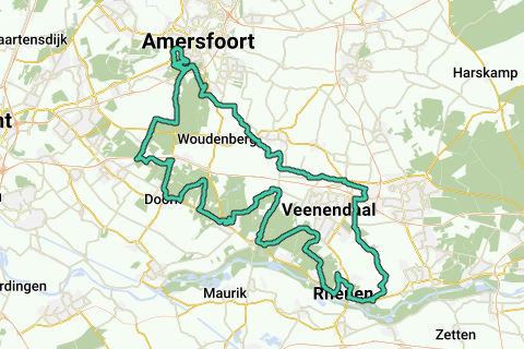 Un ramo di questo splendido percorso segue il Heuvelrug di Utrecht da Amersfoort fino al sud-est estremo della cresta a Rhenen. Lungo il cammino si accumulano il maggior numero possibile di altitudini. Il percorso è un vero anello, che non tocca né incrocia mai se stesso. Per rendere ciò possibile, l'altro ramo del percorso segue la cresta collinare, sul lato nord-est. Il viaggio si svolge principalmente su strade tranquille e piste ciclabili attraverso splendidi boschi e terreni agricoli. Un'eccezione è il tratto attraverso Amersfoort, che è stato incluso nel percorso perché qui si trovano alcune colline sorprendentemente inaspettate per molti. L'anello contiene 4 chilometri di tratti non asfaltati, che rendono il percorso più bello e tranquillo, ma la bicicletta diventa più sporca se il "pavimento" è bagnato.