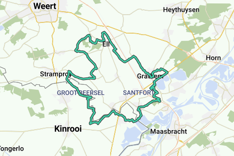 Attraversi anche il particolare paese bianco di Thorn. Inoltre, pedalerai due volte ad un'altezza impressionante, cioè sopra il canale di Wessem-Nederweert e a Thorn attraverso l'imponente complesso di chiuse di Panheel.