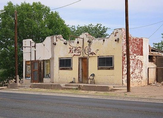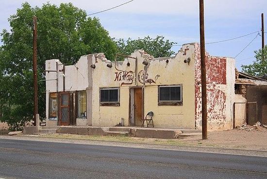 La nota installazione artistica Prada Marfa si trova a 2,4 km a nord-ovest di Valentine sulla U.S. 90.