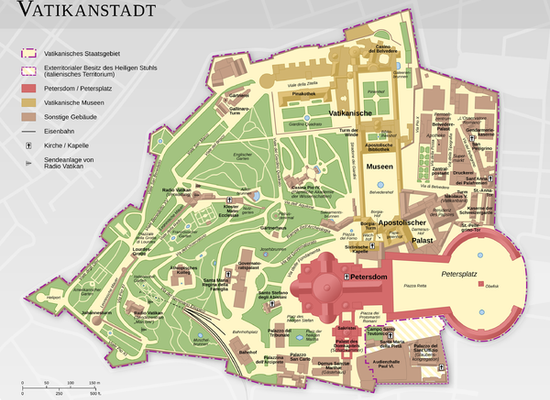 La Città del Vaticano è uno Stato dell'Europa meridionale, confinante esclusivamente con la Repubblica Italiana . Con i suoi 440.000 m² di estensione, è il più piccolo Stato del mondo. Fuori dal Vaticano, 13 edifici in Roma e a Castel Gandolfo , residenza estiva del Papa, godono di diritti extraterritoriali.