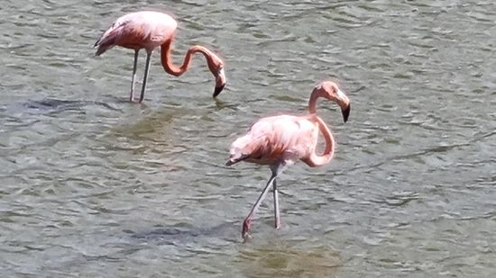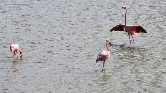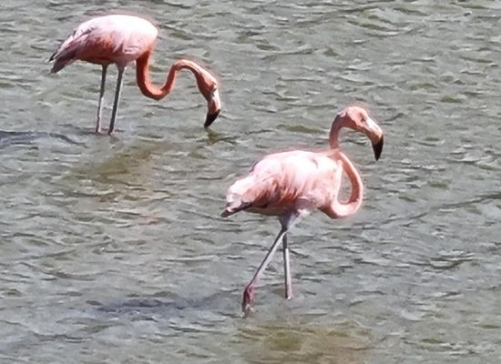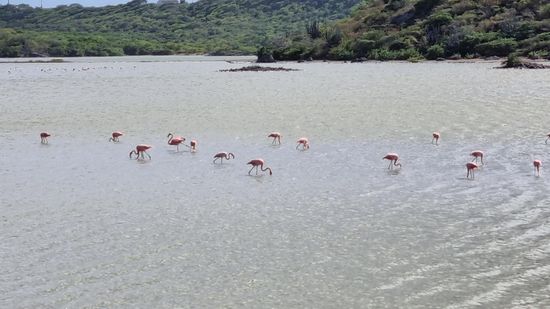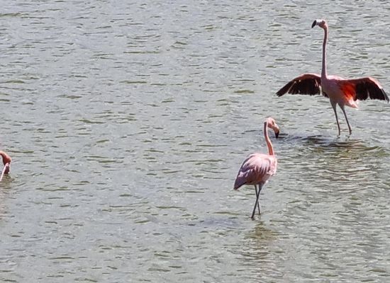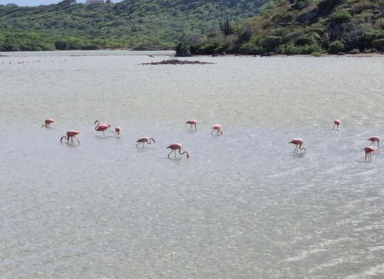 Als je in de zoutpannen van jan Thiel geen flamingo's kunt spotten, dan kun je het eens proberen op deze locatie.