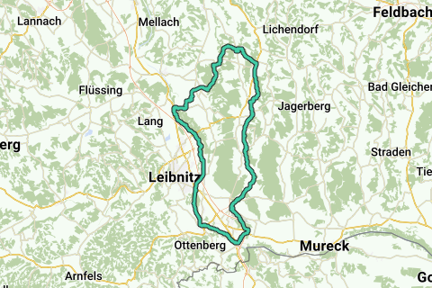 Van Frannach via St Georgen an der Stiefing naar Lebring, dan langs de Murradweg tot Gersdorf. Via St. Veit vogau, Neutersdorf, Wolfsberg naar Tagensdorf. Over de Eichberg terug naar Frannach.