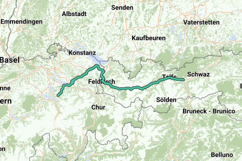 Pelgrimspaden voor wandelingen tussen Innsbruck en Schwyz. De volgende steden liggen op de route: Innsbruck, Feldkirch, St. Gallen en Schwyz.