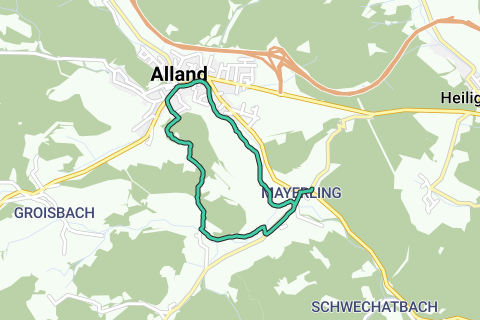 Verwarm uw spieren en geniet van het landschap in Alland. Bent u geïnteresseerd in geschiedenis? U zult vinden waar u naar op zoek was, want langs deze route is er een kasteel. U zult op deze route niet van verveling sterven. De wandelroute begint bij de parkeerplaats.