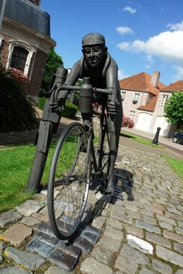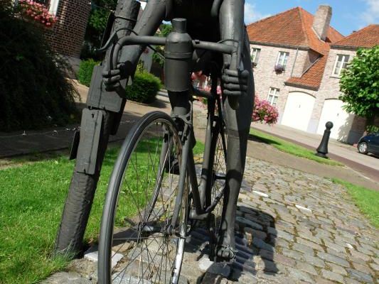 Dat je Kanegem naderde, merkte je ongetwijfeld aan de fleurige bermen. Kanegem wordt dan ook niet voor niets het bloemendorp genoemd. In het kleine dorp bevindt zich een grote en prachtig versierde kerk die de bijnaam 'kathedraal van te lande' kreeg. Aan de kerk pronkt het standbeeld 'De Flandrien' van kunstenaar Jef Claerhout. Niemand minder dan Briek Schotte, geboren Kanegemnaar, wordt er zeer levendig afgebeeld. Briek Schotte (1919-2004) wordt vaak de laatste der Flandriens genoemd ofwel 'IJzeren Briek'. Heel wat overwinningen staan op zijn palmares: hij won twee keer de Ronde van Vlaanderen in 1942 en 1948 en werd twee keer wereldkampioen in 1948 en 1950.