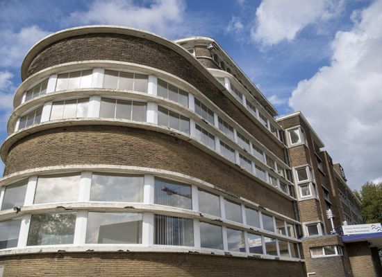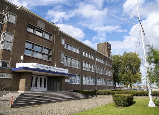 Wie wil, kan aan het einde van de Droogdokkenweg het fietspad links opwandelen om zo de Antwerp Maritime Academy te bezoeken. Door de werken aan de Oosterweelverbinding moet je dezelfde route terugnemen om de route te vervolgen. Met een uitzicht over de bocht van de Schelde ligt de school op een van de mooiste plekjes van de stad. Een must om eens te bezoeken, al is het maar om de architecturale waarde van deze modernistische parel. “Dit gebouw is sinds 1932 in gebruik. Opvallend is de vorm van de school. Toen het Ministerie van Transport in 1929 een architectuurwedstrijd uitschreef won architect Josse Van Kriekinge met een ontwerp met veel verwijzingen naar scheepsvormen.” Binnen kan je het interieur bewonderen. Blikvangers zijn de schilderingen van de havenactiviteiten in de inkomhal uit de jaren 30. Verderop torent het Havenhuis boven het Kattendijkdok uit. Deze landmark, een ontwerp van Zaha Hadid, kan je met een gids bezoeken.