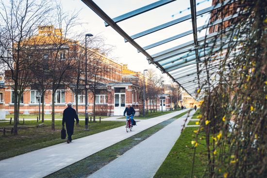 Waar ooit gewonde soldaten werden verzorgd, vind je vandaag een van de hipste buurten van de stad. In ’t Groen Kwartier kregen de statige ziekenhuispaviljoenen van het Militair Hospitaal een tweede leven als woningen, werkplekken en ontmoetingsplekken. Wandel langs de charmante gebouwen, ontdek het hotel in het oude klooster en de pilatesstudio in de kapel. Alles ligt in een autovrije oase van rust. Via een doorsteek sta je op de PAKT-site, met creatieve hotspots, restaurants en zelfs een boerderij op het dak.