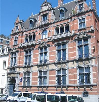 Nr. 50: Herenhuis z.g. R.moretus - De Theux, in 1950 aangekocht door de F.O.B.-kliniek (Federatie van Onderlinge Bijstand), in 1979 aangekocht door de stad Antwerpen ten behoeve van de Vierde Politie afdeling. Groot hotel in neo-Vlaamse renaissancestijl n.o.v. J. Stordiau, van 1879-1884. Halfvrijstaand gebouw van vijf traveeÙn en drie bouwlagen onder ruim schilddak (leien) met verschillend uitgewerkte dakkapellen en typische schoorstenen. Lijstgevel, enkelhuistype, van bak? en natuursteen op geprofileerde sokkel van arduin, onderbroken door rondbogige getraliede keldervensters. Markante hoger opgaande middentravee en