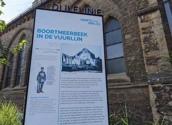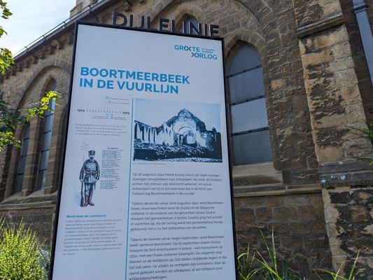 Op 18 augustus 1914 moest koning Albert zijn leger noodgedwongen terugtrekken naar Antwerpen. Hij wilde de Duitsers echter niet zomaar vrije doortocht verlenen, en vanuit Antwerpen viel hij ze tot twee keer toe in de flank aan. Telkens lag Boortmeerbeek in de vuurlijn.