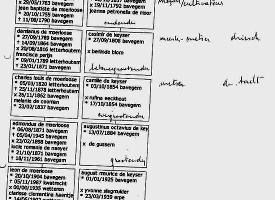 Oudste gevonden melding van voorouders van Marie-Louis De Keyser is Petrus De Keyser & Lucia Eeckhout.