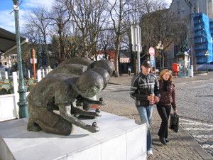 bij ons in tienen noemen we het standbeeld spaile bè de mais oep de braai van het kottegoar wat betekent spelen met de knikkers op de stoep van de gevangenis