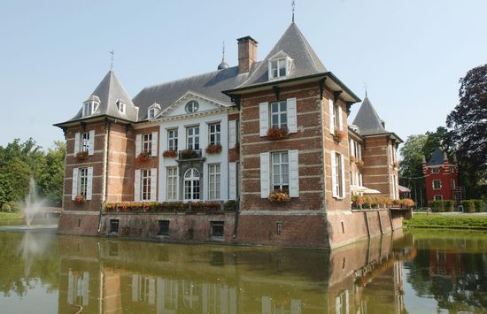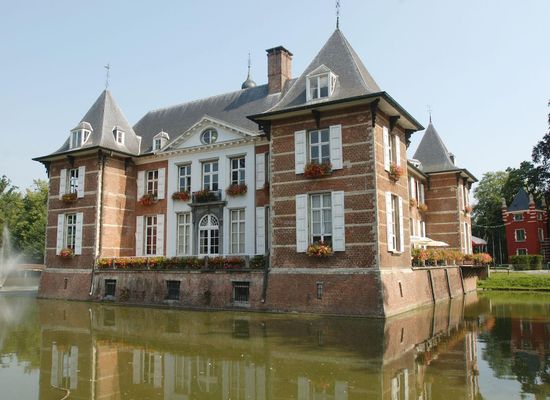 Het kasteel van Schoten is een met water omgeven kasteel gelegen in een ruim omgracht park met een vijver, graspleinen, loofbomen, hertenweide, sportvelden en een speelplein, aansluitend bij de bospercelen ten westen. Huidig gemeentehuis van Schoten.