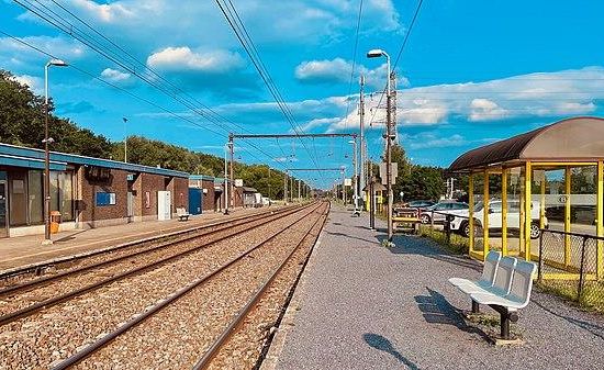 Het stationsgebouw werd gebouwd in 1975 na de afbraak van het oude stationsgebouw. In 2015 zijn de lokketten gesloten en is het niet meer mogelijk om het stationsgebouw te betreden.