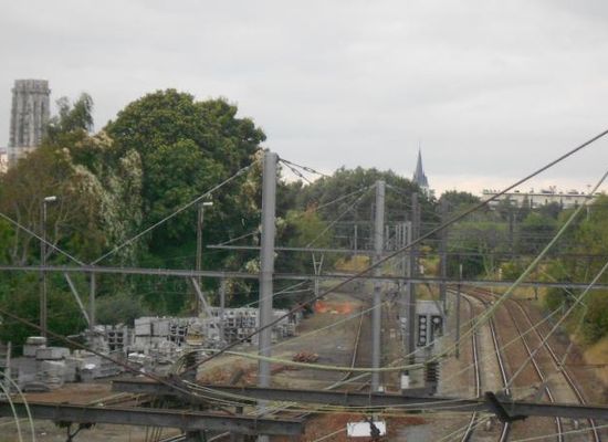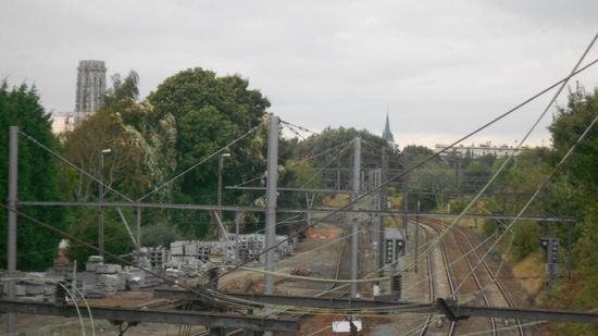 Zicht op Mechelen vanop de brug van de Smisstraat.