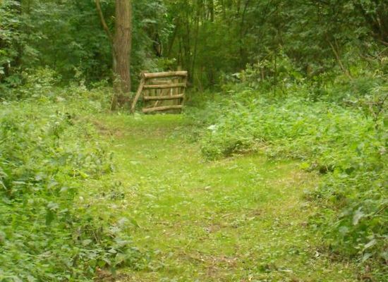 Noord-Zuiddoorgang Vriezenbroek met op achtergrond de koepoort en daarvoor de afslag rechts naar de Broekstraat.
