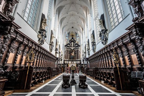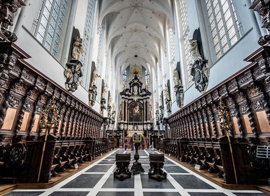 Het schitterende interieur bevat meer dan vijftig schilderijen van beroemde Antwerpse meesters als Rubens, Van Dyck en Jordaens; meer dan 200 beeldhouwwerken, prachtige barokaltaren en gesculpteerd kerkmeubilair dat tot het mooiste ter wereld behoort. Het orgel dateert van de zeventiende eeuw maar werd herhaaldelijk gerestaureerd en uitgebreid.