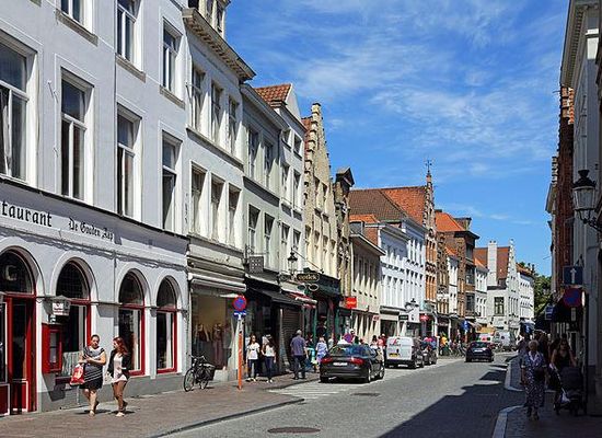 De heerweg van Oudenburg naar Aardenburg liep in Brugge vanaf 't Zand tot aan de Grote Markt. Er werden namen aan delen van de baan gegeven naarmate de baan als straat werd aangelegd. Het gedeelte van de Grote Markt tot aan het Vleeshuis droeg al vroeg de naam van Steenstraat. Het volgende gedeelte, van het Vleeshuis tot aan de kathedraal, droeg tot ver in de achttiende eeuw de naam Ongepluimde-vogelstraat, totdat het ook Steenstraat werd. Het laatste deel, van de kathedraal tot aan 't Zand, werd de Zuidzandstraat, parallel met de Noordzandstraat. Beide namen verwijzen naar het feit dat de straten naar 't Zand leidden.