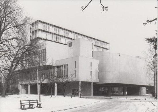 Het brutalistische gebouw werd in 1972 ontworpen door Geo Bontinck en in september 1975 ingehuldigd door premier Tindemans. Het project werd opgezet als 'Centrum voor Manifestatie en Congres' met een polyvalente zaal met 1000 zitplaatsen voor concerten en congressen. Het gebouw moest eveneens het Flanders Trade Centrum en Cultuur Centrum huisvesten, en bood daarnaast permanente expositieruimten voor de internationale jaarbeurs der Vlaanderen en de Gentse Floraliën.