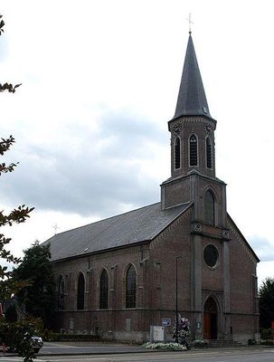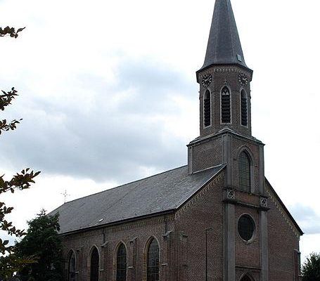 De kerk is een voorbeeld van vroegneogotiek, gebouwd op de plaats van een kerk, vermoedelijk uit de 17e eeuw. De twee portiekaltaren uit wit en zwart marmer en schilderijen van Antoon van den Heuvel komen uit de oude kerk.