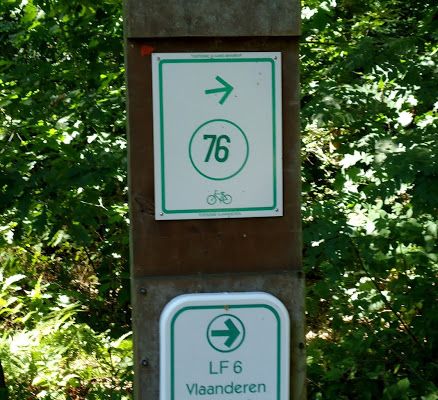 Op weg naar wandelknooppunt 603 overlapt de LF6 Vlaanderen fietsroute naar knooppunt 76 onze wandelroute.