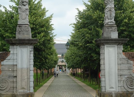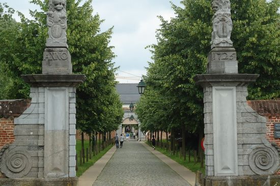De Leeuwenpoort, hoofdingang van de abdij via de Geldenaaksebaan.