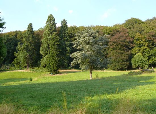 Bij een villa aan de rand van het Scherpenbergbos werd een indrukwekkende laat 19de- tot vroeg 20ste-eeuwse tuin aangelegd op de flanken van de Hotondberg. Een blauwe Atlasceder maakt deel uit van het aangeplante bomenassortiment.