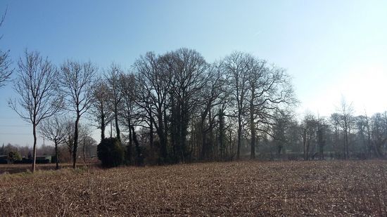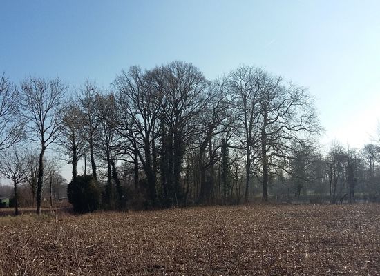 Op de Scheldeoever tegenover het Kasteel van Bornem staat in het zicht van het kasteel een opvallende bomengroep. Een es, een zomereik en een plataan werden hier samen aangeplant langs een onverharde losweg tussen twee akkerpercelen. Vermoedelijk maakte de aanplanting van de opgaande bomengroep deel uit van de parkaanleg van het kasteel net zoals de groepjes van tien opgaande platanen vlakbij.