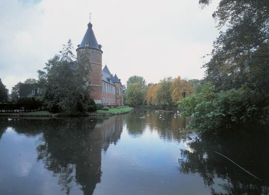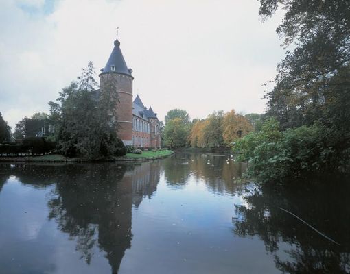 Goed bewaarde middeleeuwse, omgrachte brucht, door een 400 meter lange, dubbele dreef verbonden met de dorpskerk; aanleg van een landschapspark van 2 hectare in 1820-1830 met 'rivier' en rotspartij; installatie van een kostschool met vanaf 1960 nieuwe schoolgebouwen, waardoor het noordelijk gedeelte van het park grotendeels verdween.