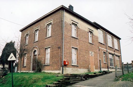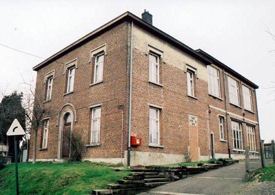 Boven het straatniveau gelegen, heden leegstaand negentiende-eeuws complex bestaande uit het voormalige gemeentehuis aan de straat en achterin aansluitend de schoolvleugel, laatstgenoemde momenteel met twintigste-eeuws uitzicht. Het T-vormige complex werd op het kadaster ingetekend in 1869. Het gemeentehuis vertoont een gelijkaardig uitzicht als dat van Mollem (Dorp 1) en Kobbegem (Lierput 15) en is gelegen in het beschermde dorpsgezicht van Bekkerzeel (Besluit van 13 november 2002).