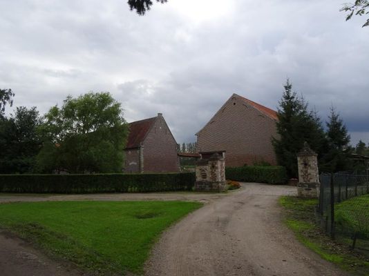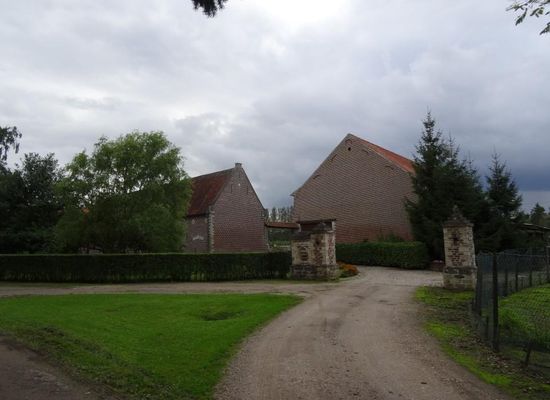 Middelgrote hoeve uit begin 18de eeuw voorzien van afzonderlijke bijbouwen uitziende op het ruime erf. Eén verdieping hoog boerenhuis met zadeldak in traditionele bak- en zandsteenstijl, boven de deur gedateerd 1728. Kruisvensters in de voorgevel, hoge en smalle rechthoekige ramen met middenkalf in de achtergevel; interessante zandstenen deuromlijsting: posten uitgevoerd zoals hoekkettingen en geprofileerde latei rustend op twee kwartronde consooltjes; ovaal bovenlicht voorzien van een vlakke omlijsting die gemarkeerd is door een sluitsteen en een korte druiplijst. Onlangs gerestaureerd: toevoeging van een gelijksoortige deur en een kruisvenster. Stallingen uit dezelfde tijd, doch vrij grondig verbouwd, rechthoekige deuren met vlakke lateien op consooltjes; puntdakkapellen voorzien van rechthoekige laadvensters; overhoekse muizentand. Grote schuur uit de 19de eeuw.
