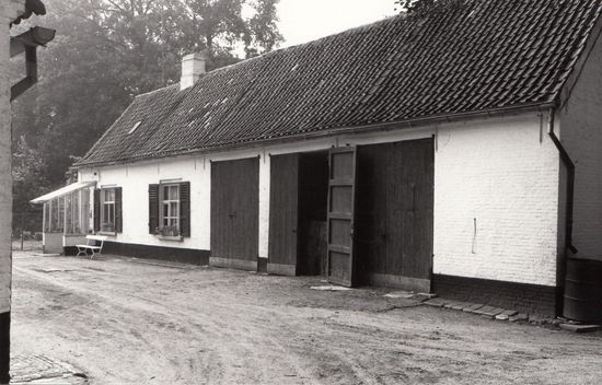 Langgestrekt hoevetje gelegen in het domein Beelaert ten westen van het lusthof. Gewit bakstenen gebouw met één bouwlaag en zes traveeën onder zadeldak (Vlaamse pannen), uit eerste helft 19de eeuw. Vernieuwde rechthoekige vensters met luiken. Ruime poorten rechts.