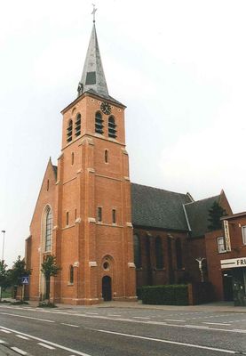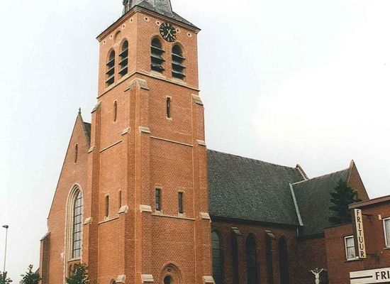 Vrijstaande neogotische kerk, gebouwd circa 1900 naar ontwerp van P.J. Taeymans; ontwerp dateert van 18 februari 1898. Omhaagd kerkhof. Tot 1561 vormden Hegge, Poppel, Ravels en Eel één parochie, behorende tot het bisdom Luik. Poppel en Ravels vormden een "dubbel-kerk" met één pastoor die op de pastorie te Poppel resideerde. Circa 1561 werd Ravels een autonome parochie binnen het nieuwe bisdom Antwerpen.