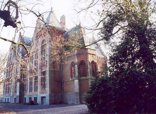 Kasteel zogenaamd "Bloemendale". Kasteel gebouwd in 1878 naar ontwerp van architect Louis Delacenserie, geïnspireerd op de Brugse baksteengotiek en de traditionele bak- en zandsteenstijl. De site is reeds van in de 18de eeuw eigendom van de familie van Zuylen de Neyevelt. Daarvoor behoorde het domein toe aan de familie d'Hanins de Moerkerke. Bij de aanleg van het spoor circa 1838 werd het domein door midden gesneden. Het werd echter niet onteigend als aandenken aan het feit dat koning Leopold I hier ooit had verbleven na een spoorwegongeval. Ten noordoosten van het huidige neerhof werd circa 1845 een woonhuis gebouwd dat door verschillende opeenvolgende uitbreidingen en vergrotingen tijdens de 19de eeuw zou evolueren tot kasteel. Het werd afgebroken in 1938. In 1875 werd het goed opgekocht door Leonie Mulle de ter Schueren, weduwe van Pierre Charles de Vrière. Zij was de opdrachtgeefster voor de bouw van het huidige kasteel. Na haar dood werd haar zoon Etienne ridder de Vrière eigenaar die er tot aan zijn dood in 1936 woonde. Ridder de Vrière was burgemeester van Beernem van 1891 tot 1936. Na zijn overlijden werd het park met verkaveling bedreigd. Het kasteel werd aangekocht door de familie Sap die het kasteel moderniseerde en renoveerde. Tot op heden wordt het kasteel bewoond door de familie Sap. Kasteel