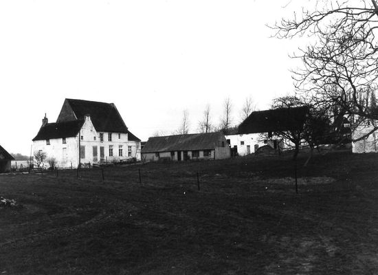 Hoeve "Groot Amelgem", in de loop van de 12de en 13de eeuw (1246) verwierf de abdij van Grimbergen geleidelijk een belangrijk domein (oorspronkelijk een gallo-romeins(?) en in de 4de eeuw een Frankisch goed) dat door de feodaliteit verbrokkeld was. Aanvankelijk verenigd in een hof met een eigenkerk en twee watermolens, werd de uitbating einde 17de eeuw gesplitst in twee boerderijen. Samen met de hogerop gelegen kapel, het in de diepte gelegen "Klein Amelgem" en het ten zuiden gesitueerde "Neerhof" (Wemmel), een merkwaardig ensemble dat in een ongerept heuvellandschap bewaard is gebleven. "Groot Amelgem", zelf ingeplant op een heuvelrug, omvat een boerenhuis uit de 17de eeuw, een stalvleugel uit de 18de eeuw, de ietwat verder gebouwde zogenaamde "Duivelschuur" van 1636 en een alleenstaand bakhuisje. Complex boerenhuis met een twee verdiepingen hoge langsvleugel met zeer steil en mank zadeldak (pannen) op geprofileerde houten modillons en een ertegen aanleunend dwarsgebouw met zadeldak (pannen), vermoedelijk begin 17de eeuw opgetrokken (ten tijde van het prelaatschap van Ch. Outers 1613-1647) na de verwoesting tijdens de troebelen van einde 16de eeuw. Witgekalkte baksteenbouw met zandstenen hoekstenen. Weinig of geen sporen van de oorspronkelijke muuropeningen. Wel resten van een zandstenen deuromlijsting met negblokken en kwarthol profiel. Rechterzijpuntgevel met vlechtingen en grote schouderstukken met consooltjes in de vorm van een gebeeldhouwd mensenhoofd, zeer goed bewaard aan de achtergevelzijde. Dwarsgedeelte met zijpuntgevels afgewerkt met vlechtingen en eenvoudige schouderstukken; in de achtergevel een dichtgemetseld venster met negblokken. Stallingsvleugel met afgesnuit zadeldak (pannen), uit de 18de eeuw; baksteenbouw op een zandstenen plint; links, een steekboogdeur met kwarthol profiel (een bakstenen stijl) en rechts een rechthoekige deur met negblokken en consoolprofiel onder de latei. Alleenstaande schuur met zadeldak (pannen), zogenaamd "Duivelschuur" wegens de legende die eraan verbonden is, en daterend van 1637 doch naar verluidt ingekort(?) en gedeeltelijk heropgebouwd in de 19de eeuw mits hergebruik van het afbraakmateriaal. Bak- en zandsteenbouw. Westzijpuntgevel met een hoge onderbouw van zandsteen en een met speklagen verrijkte bovenbouw; afgeschuinde rondbooginrijpoort met negblokken en jaartal 1636 op de middelste boogsteen. Oostzijpuntgevel van zandsteen met een gelijkaardige poort doch de boog van zeer kleine baksteentjes; erboven, een dichtgemetseld vierkant venster met posten en negblokken van een soort ijzerzandsteen. In de van steunberen voorziene noordlangsgevel, een zeer fraai, nog gotisch geprofileerd rondboogdeurtje met consooltjes en een uitgewerkte sluitsteen. Alleenstaand bakhuisje van baksteen met zadeldak (pannen) afgewerkt met vlechtingen.